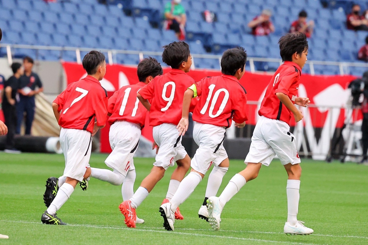 浦和レッズのホーム埼玉スタジアム2〇〇2でJリーグが開催される日に、メインピッチでキッズマッチが行われます。当日は、選手の控室を見学したり、キッズマッチ後は浦和レッズの試合を観戦することが出来ました。